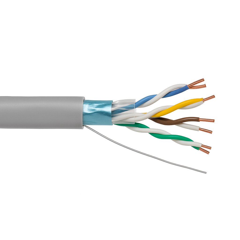 Cable UTP de 4 pares trenzados sin blindaje, ideal para redes de datos de alto rendimiento. Cumple con los estándares internacionales para aplicaciones Ethernet y transmisión de datos.